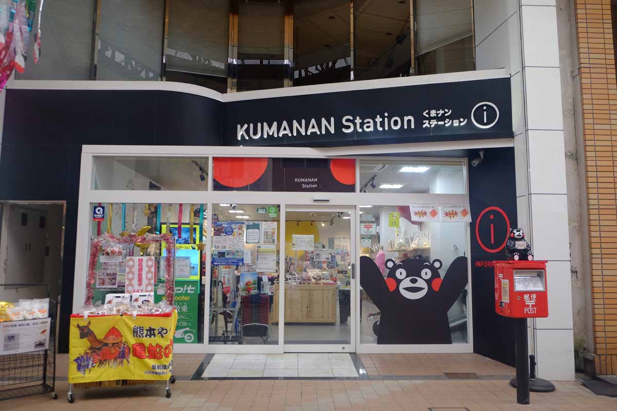 くまモンロードから本町アーケードに入って西へ少し歩くと、「くまナンステーション」があります。熊本県南部への玄関口として、八代市をはじめ熊本県南部の観光情報を紹介しているほか、さまざまな特産品を販売しています。トイレやWi-Fiを無料で利用できるので、八代観光の拠点として活用するのもおすすめです。