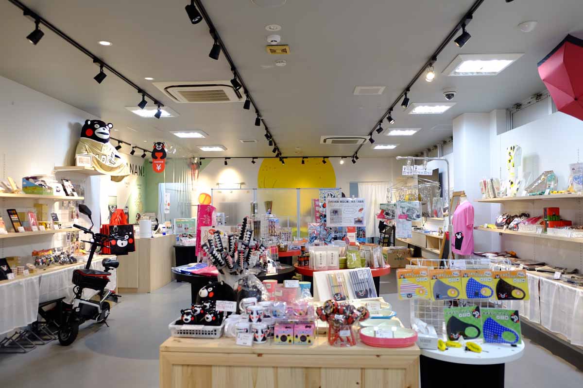 中に入るとたくさんのくまモングッズが並んでいます。すべて日本製で、100種類以上揃っているそうです。