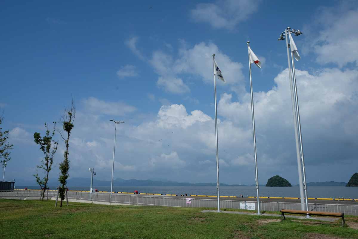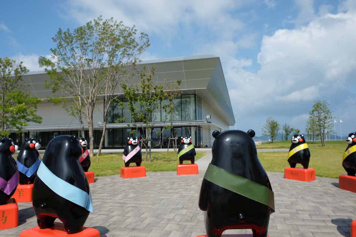八代の中心部から車で15分ほど移動し、港があるエリアに向かいます。「くまモンポート八代」は国際クルーズ船の受け入れ拠点として2020年3月に完成したターミナル。海外からの観光客を合計84体のくまモンのオブジェがお出迎え&お見送りしてくれるスポットです。船を利用しない人でも無料で入場できます。オブジェは撮影可能ですが、触れるのは禁止されているので注意しましょう。