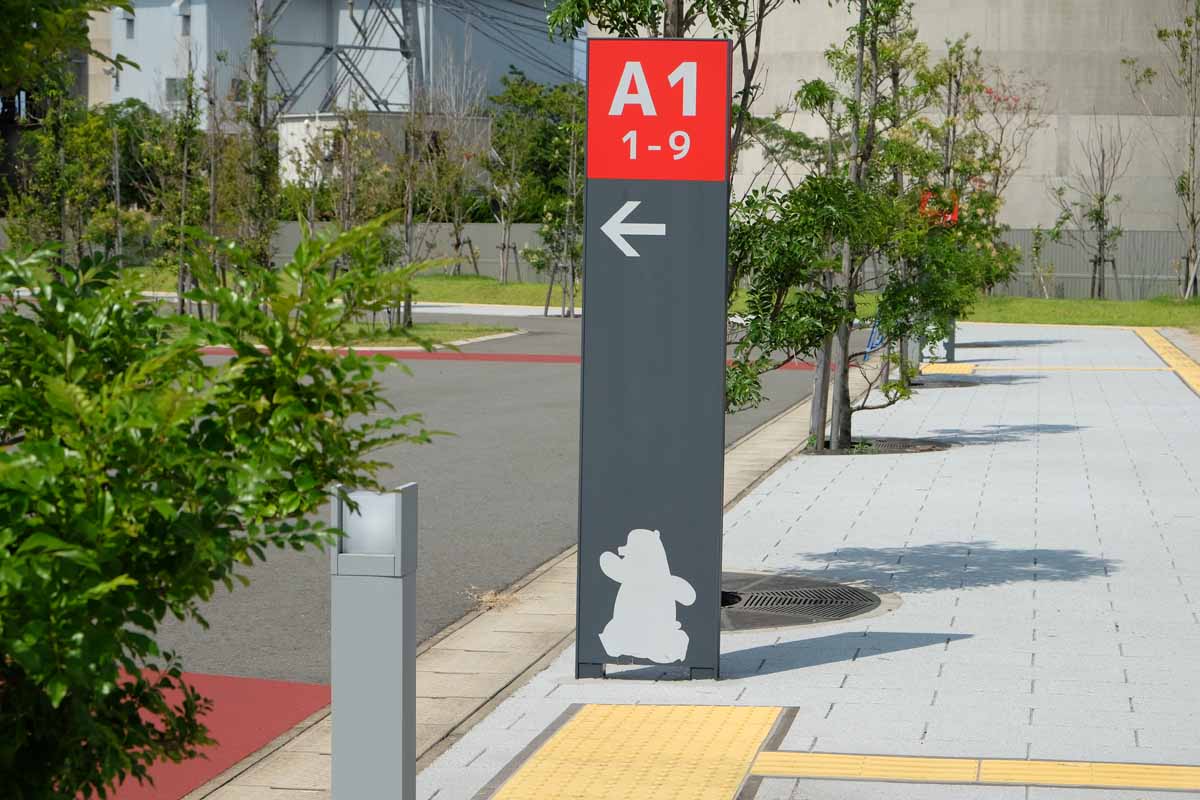 駐車場の案内板にも、さり気なく…くまモン!