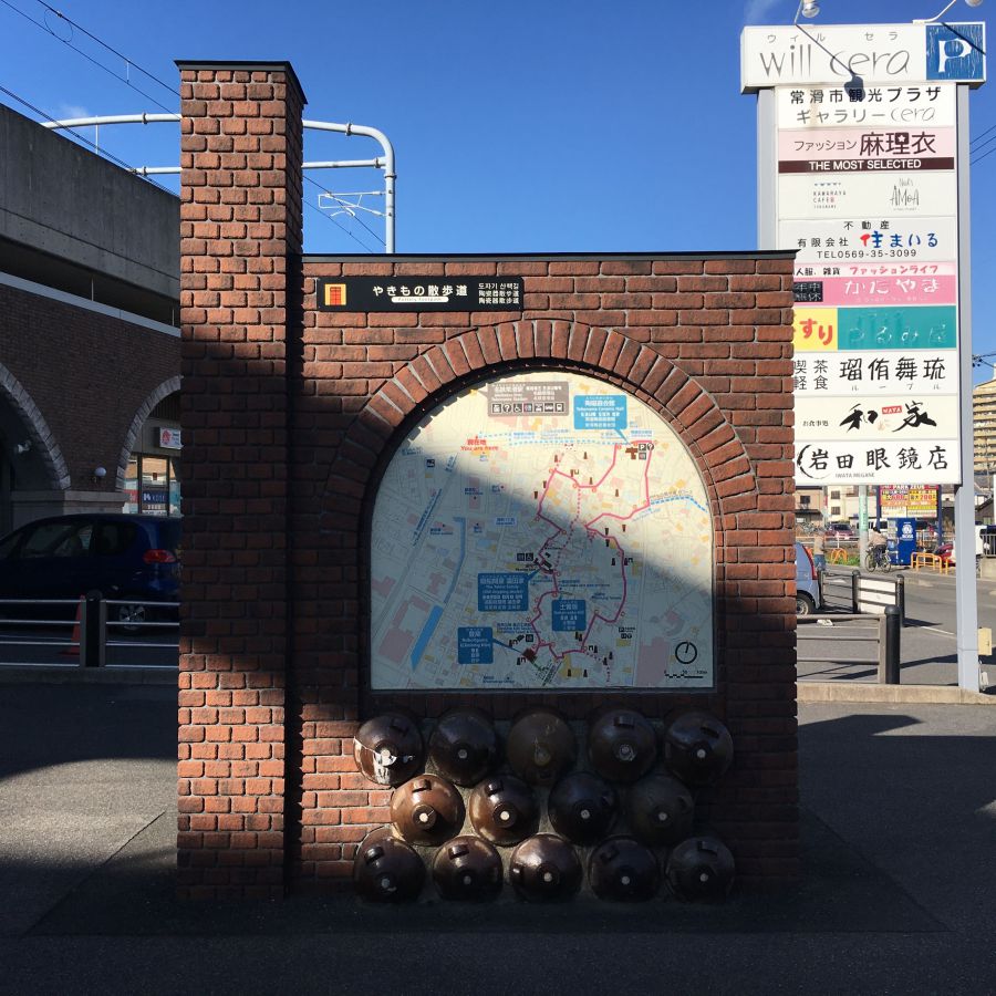 常滑駅の改札を出ると、すぐに「やきもの散歩道」への案内の看板がたくさん。道中にもたくさんの看板があるので、入り組んだ道も迷わず進むことができますよ。