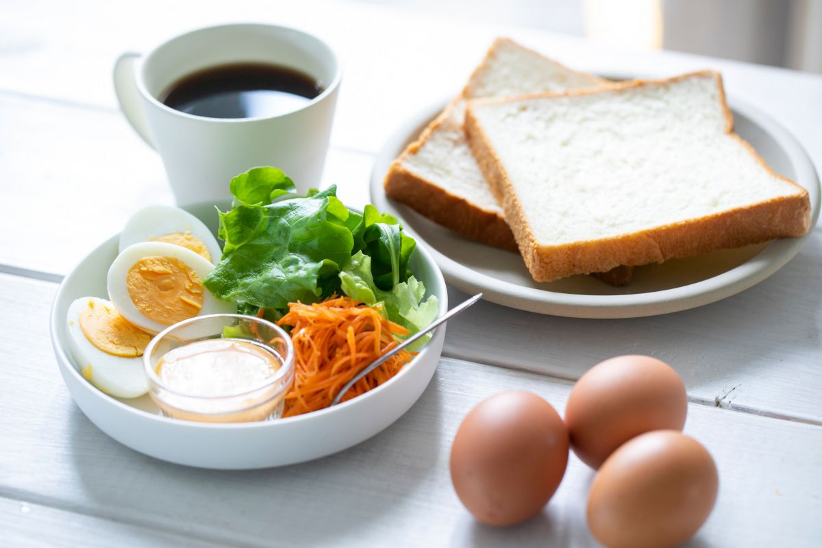 朝、絶景を眺めながらモーニングセットはいかが?「日の出たまご サンドイッチモーニング」715円は、卵黄が掴める程濃厚なたまご「日の出たまご」とサラダ、トースト2枚、コーヒーまたは紅茶がセットに。