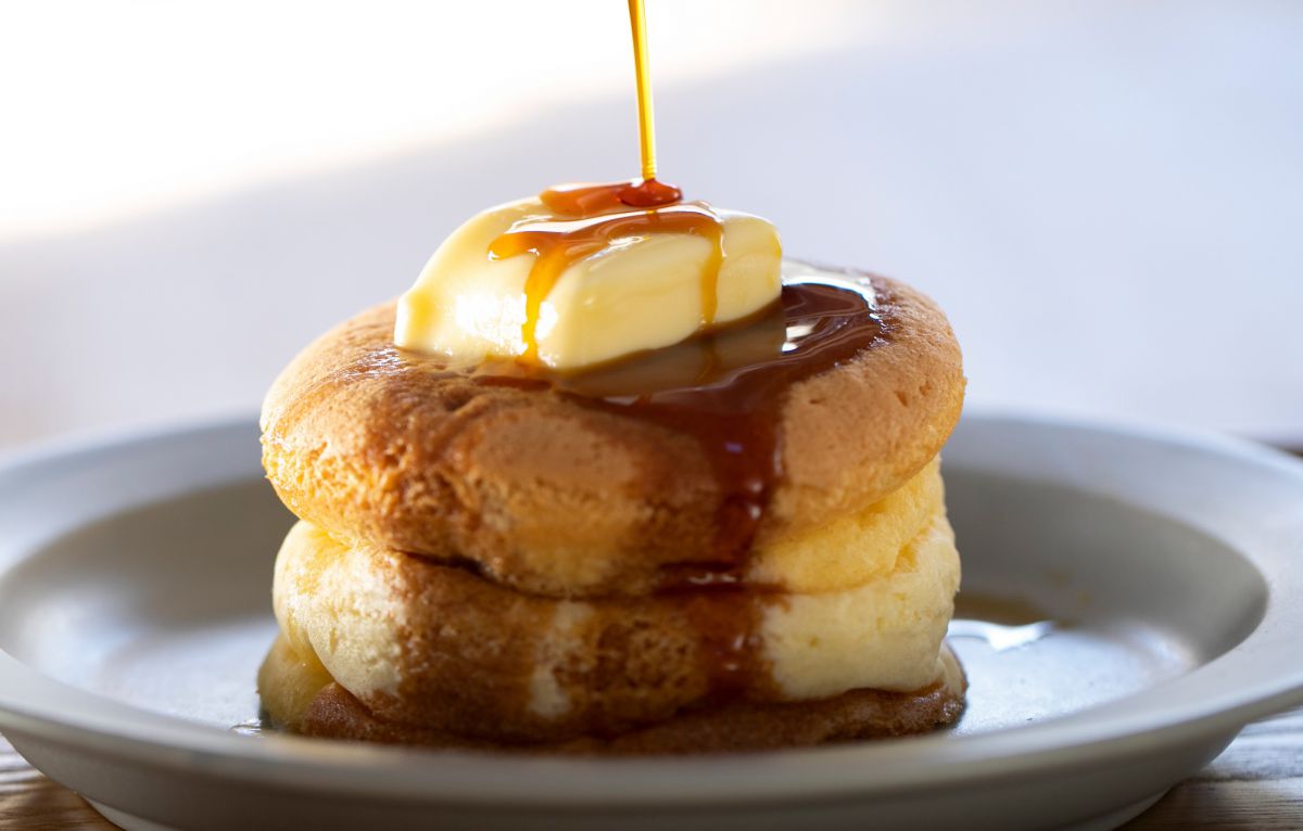 口当たりはしっとりふわふわ?!柔らかいパンケーキ「へたれパンケーキ」660円。名前もユニーク。