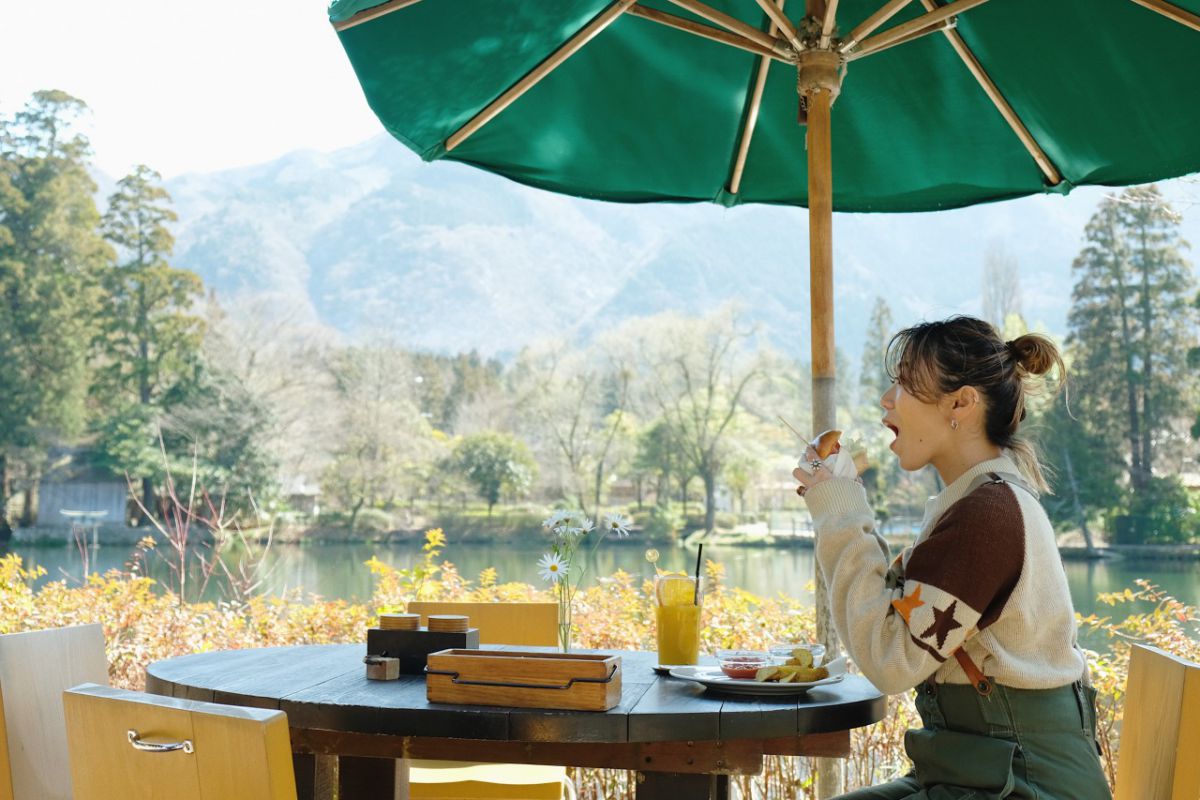 このカフェは朝からオープンしているので、金鱗湖の朝もやの中でモーニングを食べるのもおすすめ。もちろんカフェ利用もOKです。