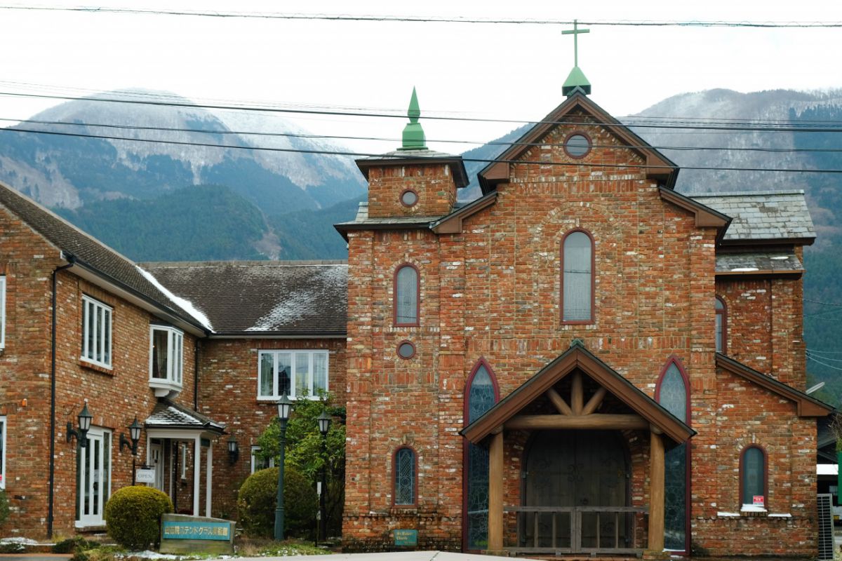 1800年代のアンティークステンドグラスを展示する、「由布院ステンドグラス美術館」。中世のヨーロッパから抜け出てきたかのような、レンガ造りの建物が目印です。