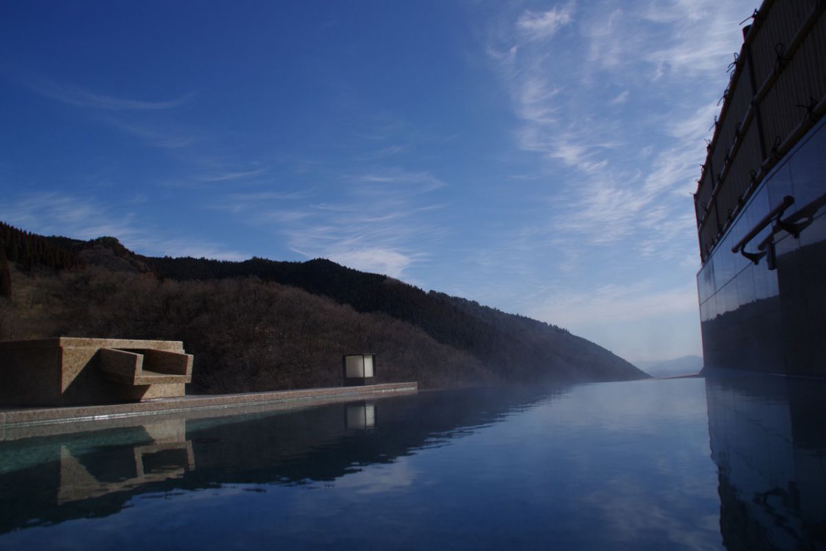 雄大な景色を望める大露天風呂は、ちょっぴり早起きして朝に行くのがすがすがしくておすすめ。青空の上に浮かんだような気分で、ゆったりと温泉につかりましょう。
