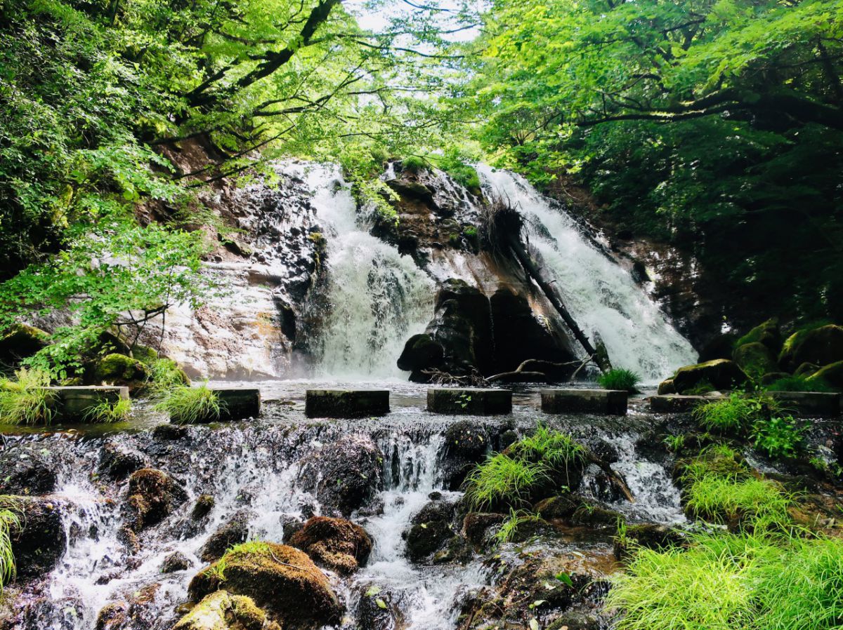 水の流れに沿って遊歩道を降りていくと、「名水の滝」が姿を現します。自然のままの原生林が残るこの場所は、知る人ぞ知る隠れたネイチャースポット!森林浴やトレッキングが好きな人にはぜひ訪れてほしい場所です。