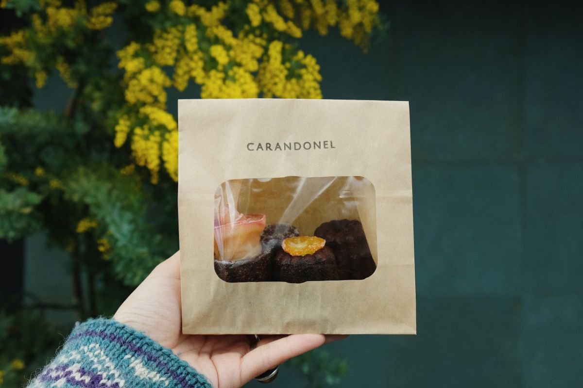 購入したカヌレは、小窓のようなデザインがキュートなパッケージに入れてもらえます。お気に入りのフレーバーを見つけたら、ぜひ連れて帰ってくださいね。
