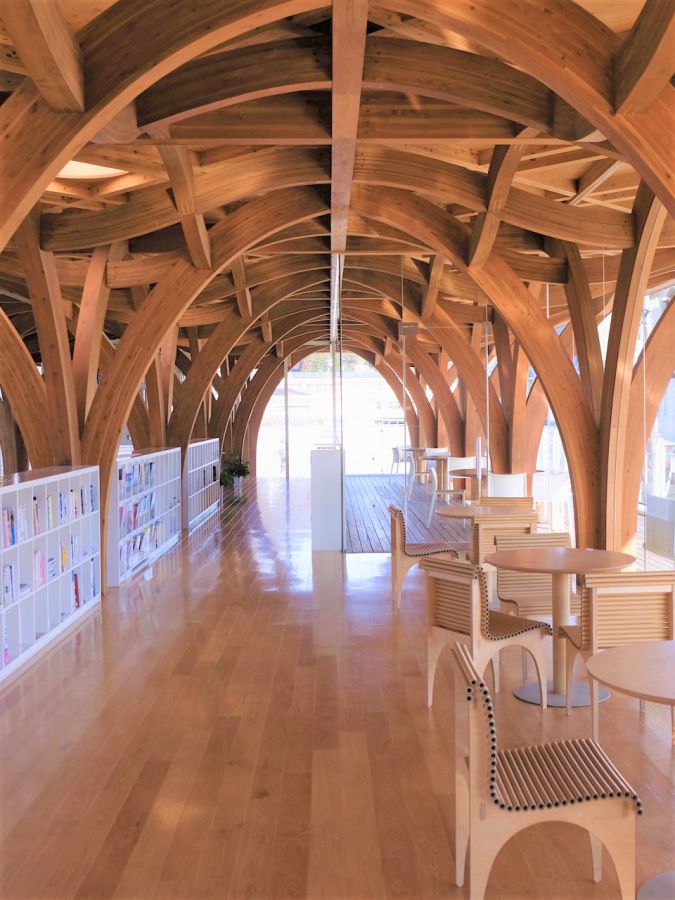 2Fには由布岳ビューの展望デッキと、旅に関する本を集めた図書館が。館内はフリーWi-Fiも整備されているので、ノープランでゆふいんを訪れても、旅の計画がここで立てられますよ。