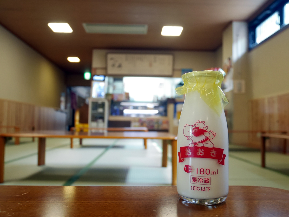 温泉のあとは、のんびりくつろげる和なレストラン「なごみ亭」で牛乳を。