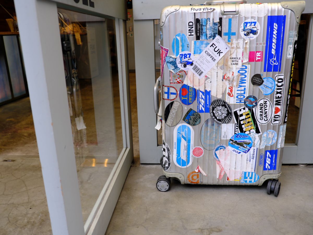 店先にあるのは、トラベラーに人気のRIMOWAのスーツケース。実際に使われていたものがそのまま置かれています。このスーツケースが出ている時が、オープンのサイン!お店のシンボル的存在です。