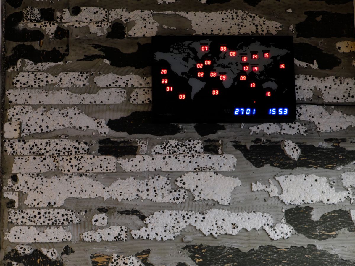 店内には世界時計も。旅行気分を味わえる仕掛けがたっぷりです!