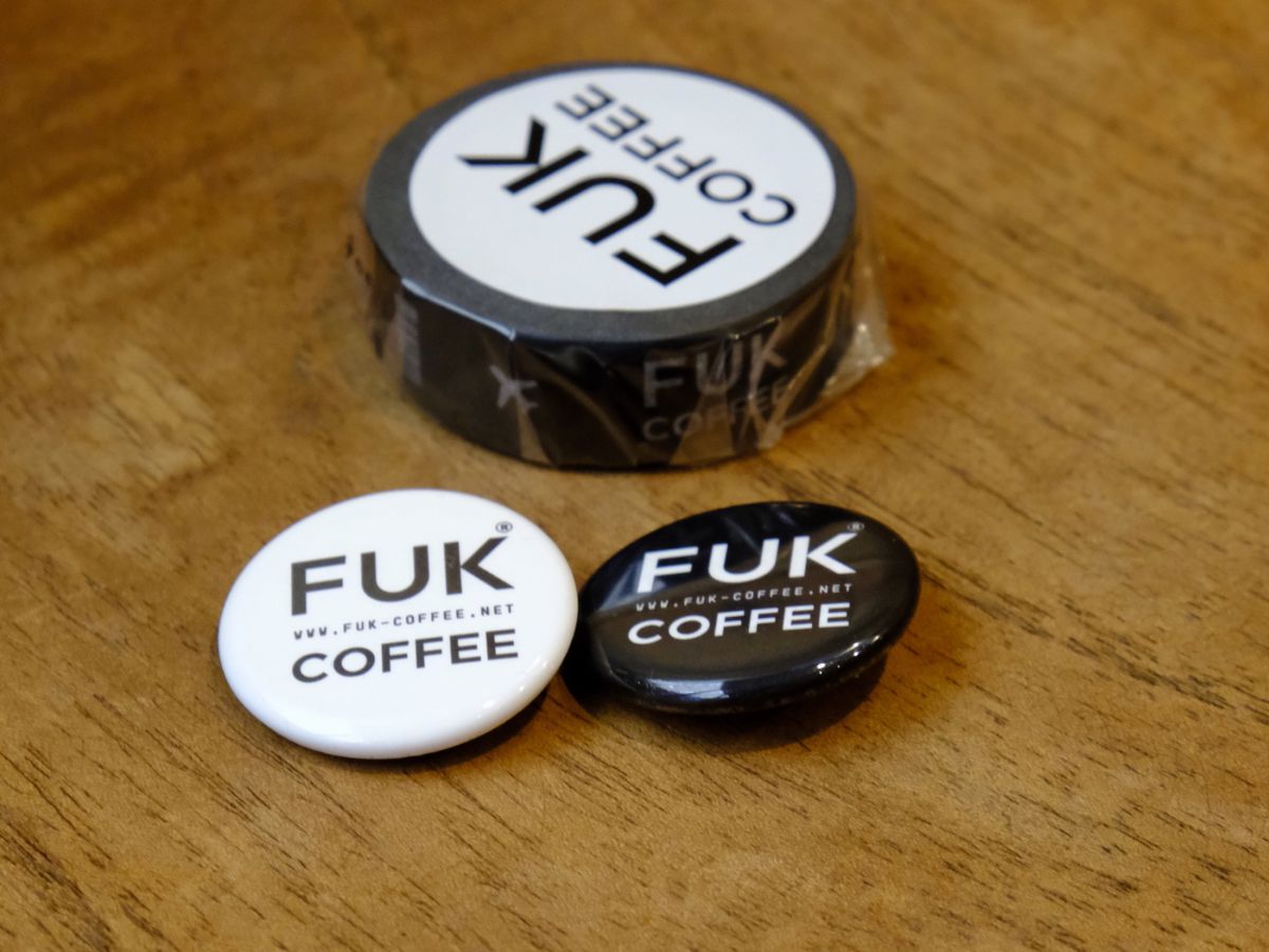 ロゴをあしらったカンバッジ(200円)やマスキングテープ(600円)もありますよ。