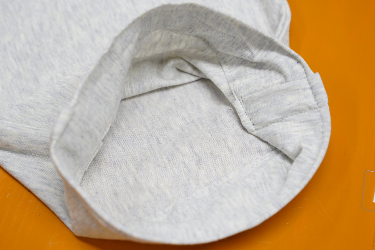 入口部分に少し絞りを持たせることで、眠りにつくまでは脱げにくいが、眠りについて寝返りをうつうちに自然と脱げるという、絶妙なバランスを兼ね備えた商品に。さらに、入り口部分はほつれにくくするため三重に縫い付けています。