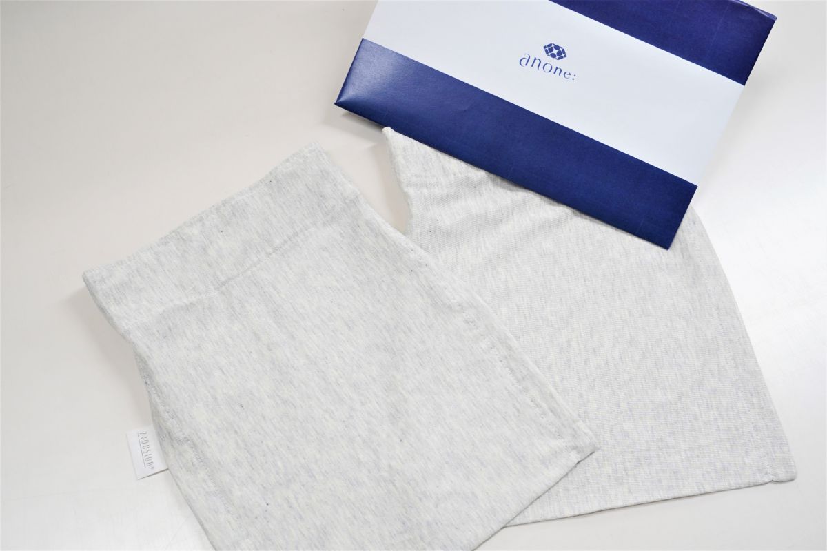 七穂工場で製造した布団類は、自社ブランド「七穂-nanaho-」として販売しています。この中から、主に働く女性にターゲットを絞ったブランド・anone:(アノネコロン)を立ち上げて販売サイトを開設しています。小さく梱包できる商品を取り揃えて展開中。「ユルックス」も、その商品のひとつなので、パッケージにはanone:の文字が記されています。