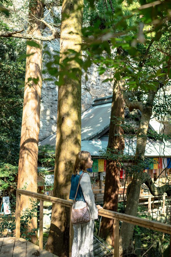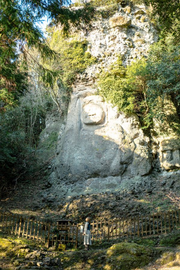 磨崖仏までの道のりはほぼトレッキング!神仏習合の地・国東らしく、鳥居から仏様まで石段が続く風景が見られてなんだか新鮮です。石段は100段あり、鬼が一夜にして築いたと伝えられているそうです。積まれた石を伝って登っていく道中は、もはや修験者気分。歩きやすい靴をオススメします!