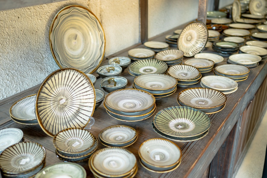 機械や電気を一切使わない、昔ながらの工程で手作りされる小鹿田焼。その一子相伝の技は、窯元の集落「小鹿田焼の里」で受け継がれています。各窯元では小鹿田焼の制作行程が見られるほか、軒先では直売品の購入も可能。お得な価格にびっくりです。