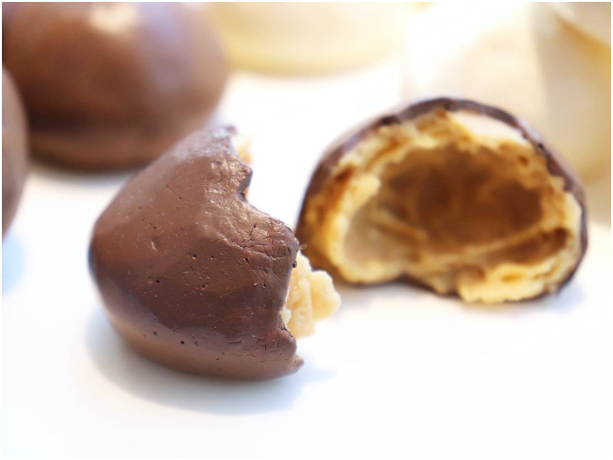 甘さは控えめで、ホワイトチョコレートの上品な甘さとシュー生地のほんのりした塩味のバランスが絶品!