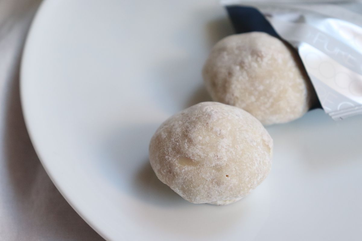 個包装の中には丸くて白いチョコレートが入っています。コロンとしたフォルムがかわいいです。