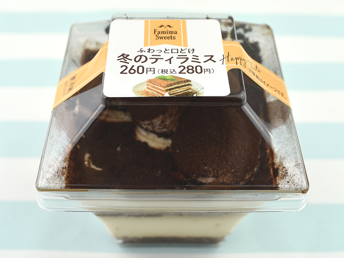 コーヒーやココアのほろ苦い風味がクセになるティラミス。イタリア生まれのスイーツですが、日本でも大人気の一品ですよね。そこで今回は、ファミリーマートの「冬のティラミス」(280円)を購入してきました。コーヒーシロップを染みこませたスポンジと、濃厚なティラミスムースを同時に味わえるスイーツです。見た目やスポンジの口当たりにスポットを当てつつ、さっそくレビューしていきましょう!