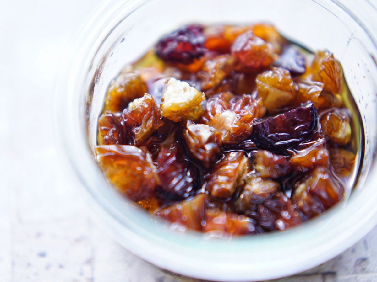 レーズンを浸るぐらいまでラム酒をそそぎ、1時間(できれば1晩)置いて馴染ませます。