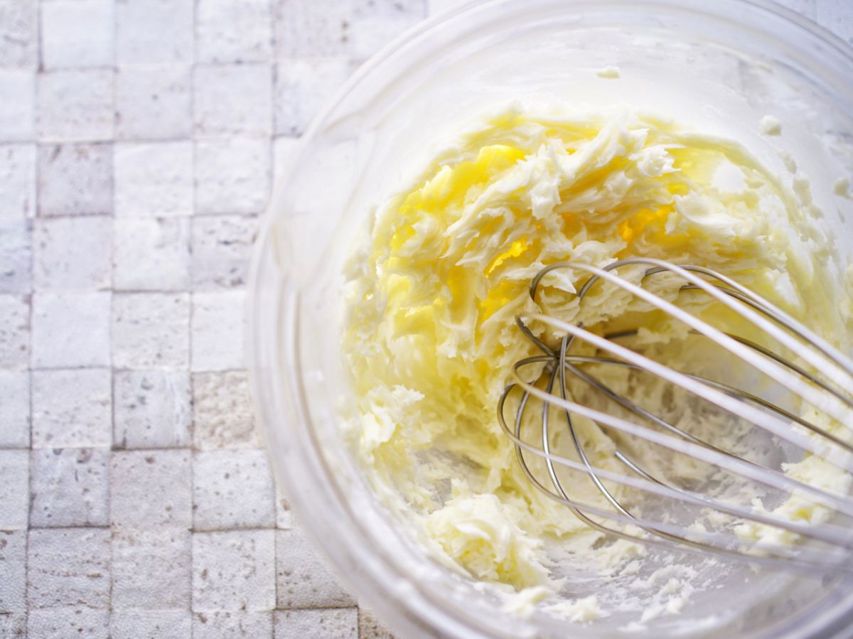 柔らかくしたバターに、粉砂糖と練乳を順に加え、ふんわりするまで泡立て器で混ぜます。