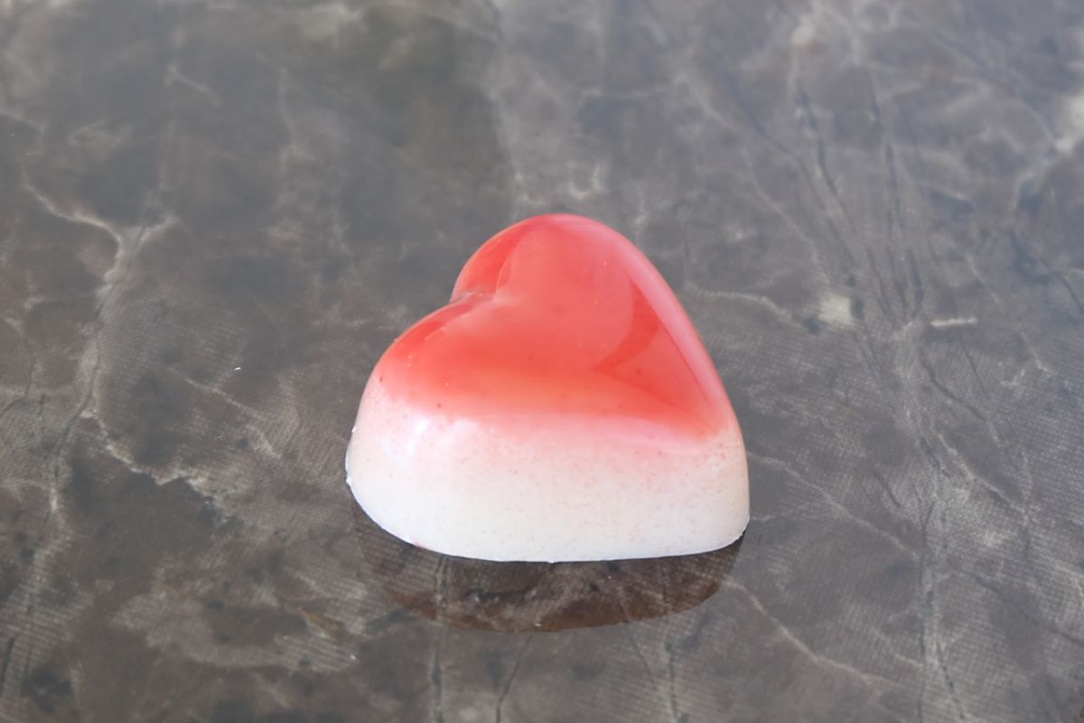 こちらは、ハートの形が可愛らしい「ローズ」(300円+税)は、ローズウォーターが入ったスイートなチョコレートです。