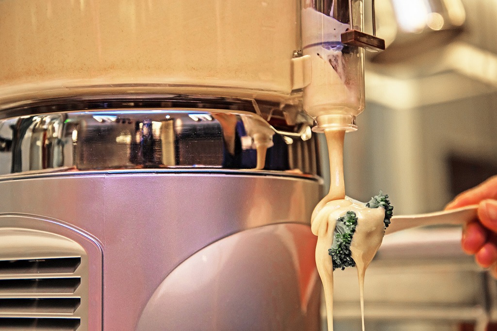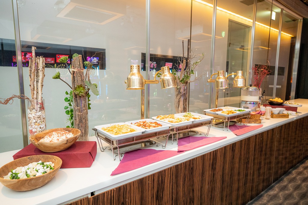絶対食べたいのが、チーズを好きなだけかけられる「チーズフォンデュ」。ビュッフェに並ぶ好みの具材を選んで挑戦してみて。