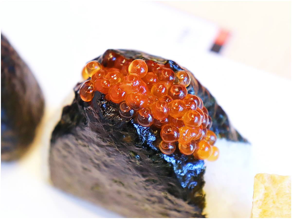 定番人気の「鮭いくら」250円(税込)は、たっぷりのいくらがトッピングされていて、なかには鮭がたっぷり入っています。