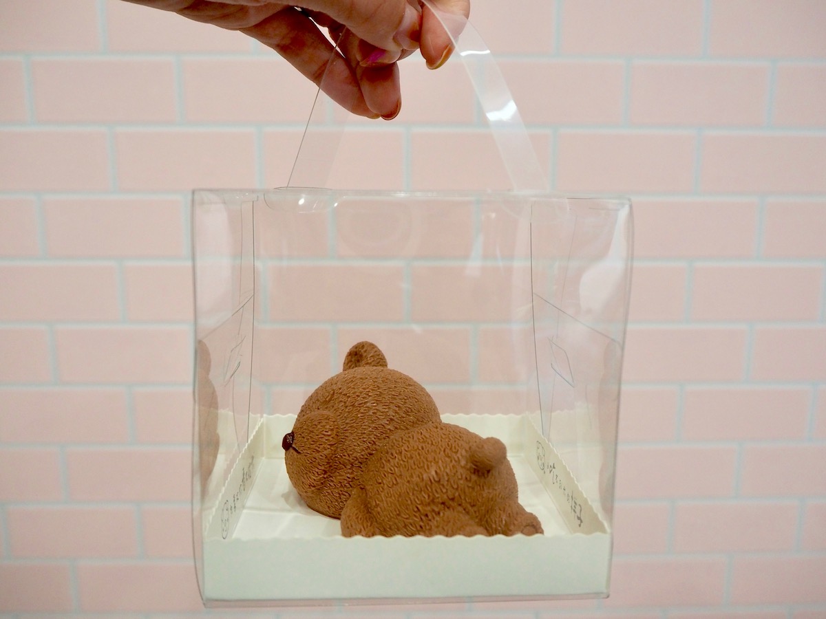 1月から新登場したこちらは、うつ伏せで眠るくまさん型のかわいすぎるチョコレートムースです。
