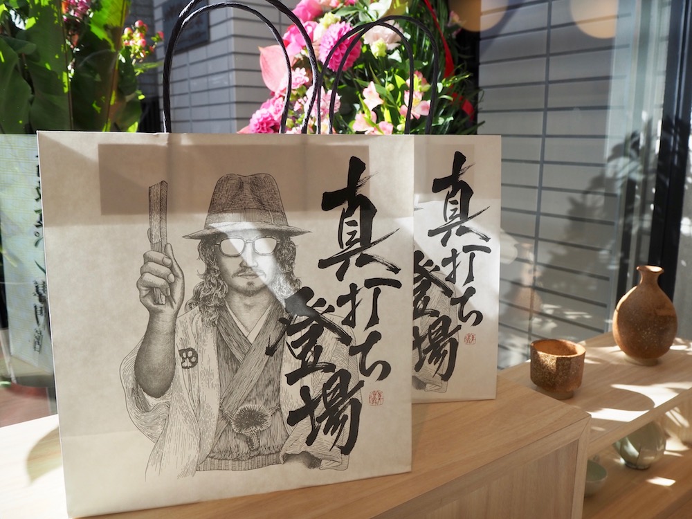 紙袋には、落語家のような風貌の男性のイラストが。とても印象的ですね!