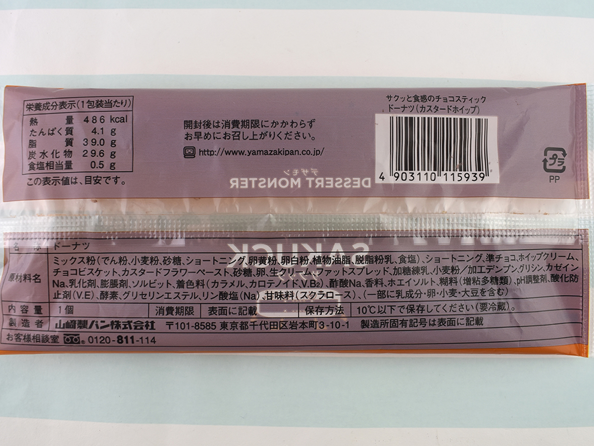 「サクッと食感のチョコスティックドーナツ(カスタードホイップ)」(ファミリーマート)