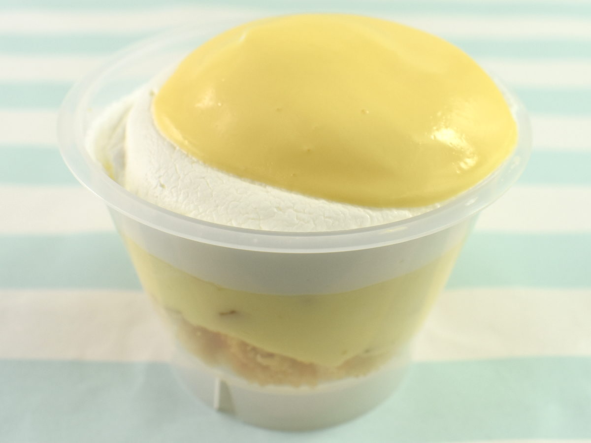 表面にホイップクリームとチーズソースが盛られたファミリーマートの「とろける生チーズケーキ」。カップのギリギリまでホイップクリームがトッピングされているので、ミルキーな味わいを楽しめそうですね。また、底面にはクッキークラムがたっぷり入っていて、とてもボリューミーな仕上がり。鼻を近づけてみると、チーズの香りが通過していきますよ。ちなみに、こちらは372Kcalほどです。