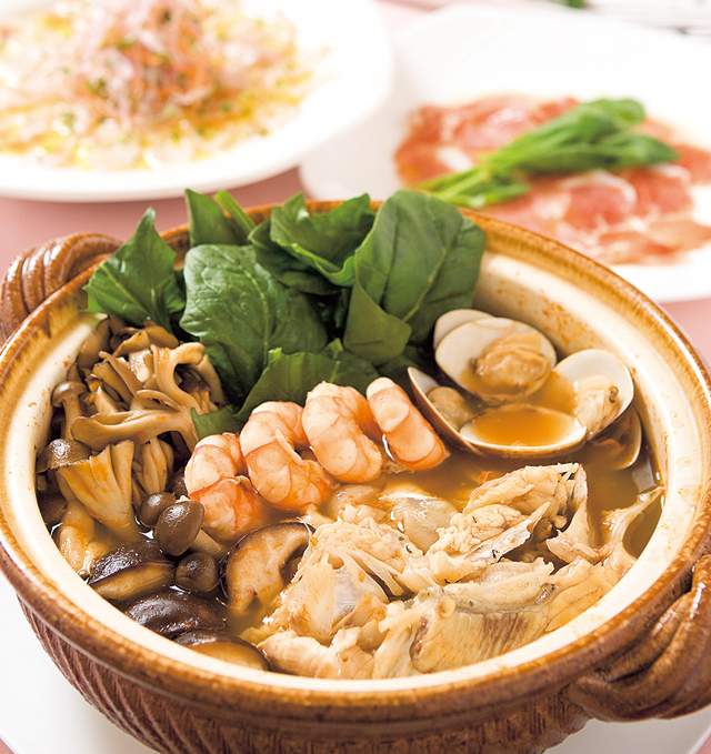 60種類ものパスタやピザと酒に合うバールメニュー、ワインやカクテルがそろうイタリアンレストラン。ボリュームたっぷりの料理がリーズナブルにいただけるとあって、地元の人にも人気です。多彩なメニューを前に悩むのも楽しみのひとつ。味も量も大満足のランチを楽しんで。
