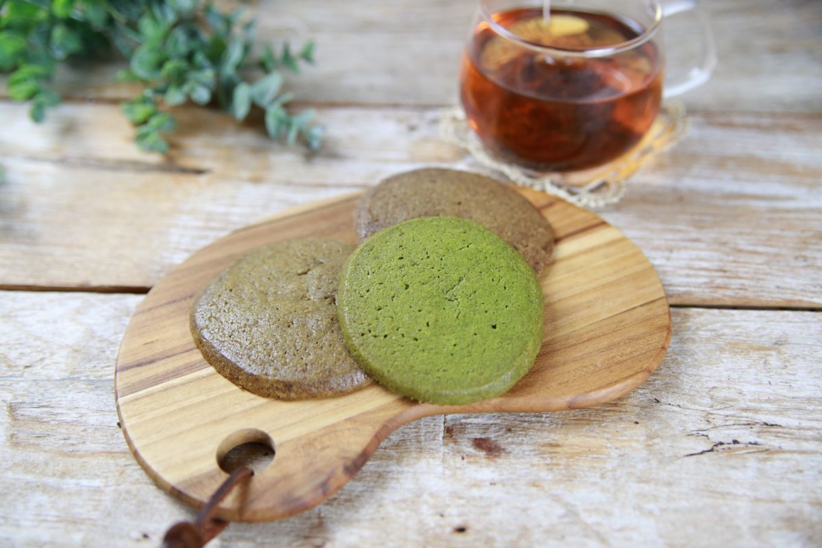 「ティースコーンサブレ」各280円は、ウバ・抹茶・ほうじ茶の全3種類。通常高温でカラッと焼き上げるサブレを、低音でじっくりと焼き上げることで、それぞれのお茶の味わいや香りを逃すことなく贅沢に味わえます。生地にはCHAVATY人気メニュー・スコーンの生地を使用。サクッとした食感とほろっとした食感も楽しめます。