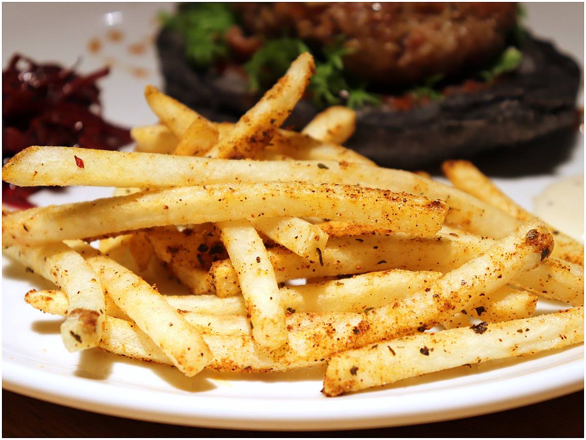 つけあわせのフライドポテトは、ケイジャンスパイスがかかった揚げたて。スパイシーで食べる手が止まりません!