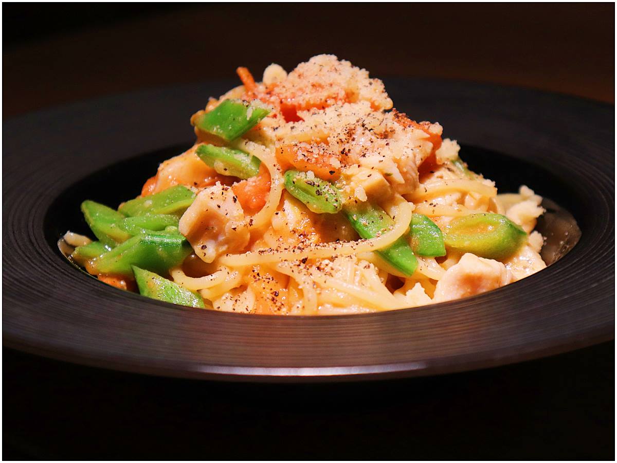 鶏ムネ肉はマリネしてから低温のスチームで火入れしているそうで、鶏ムネ肉とは思えないほどプリップリ。