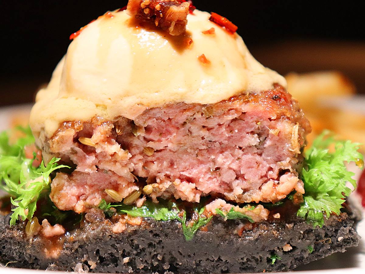 またバンズ(パン)は、ナポリの郷土料理であるゼッポリーネを使用。竹炭入りで、パンケーキのようにもちもち。