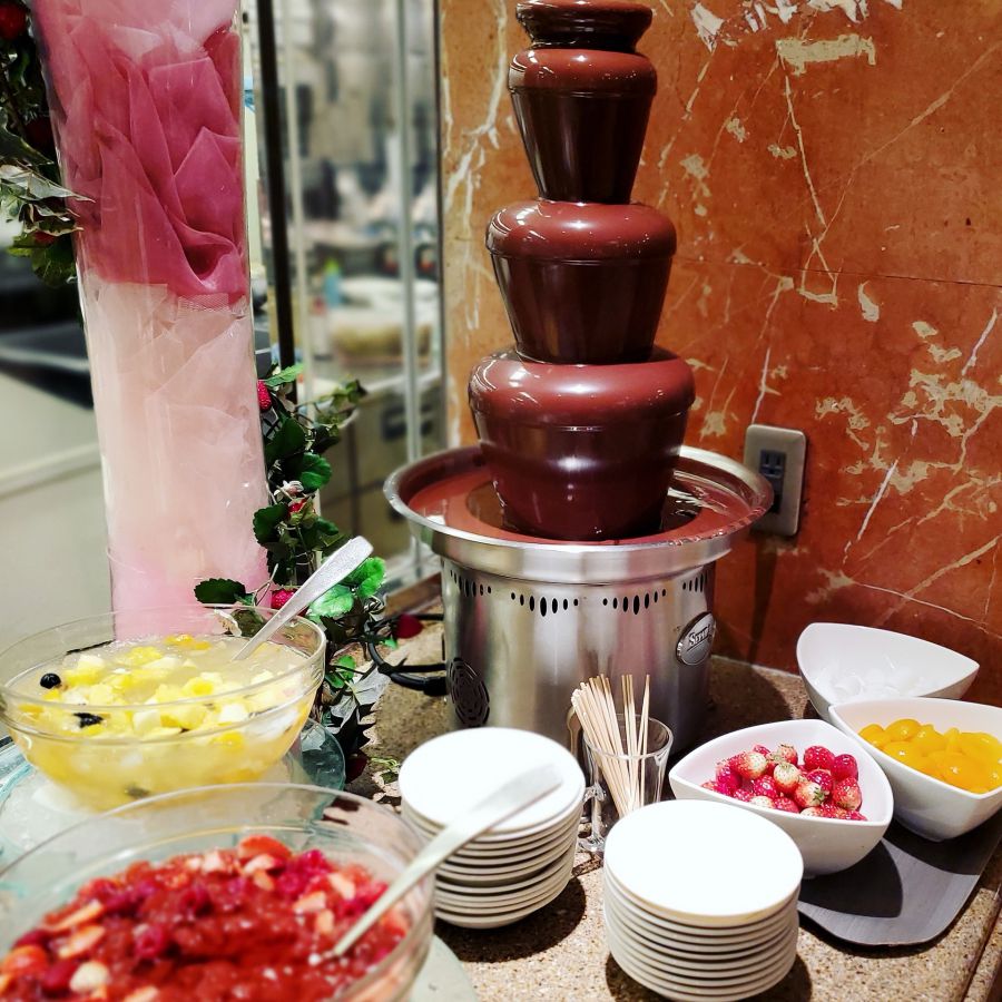 デザートブッフェには外せない「チョコレートファウンテン」に、いちごを付けると何個でも食べられますよね。