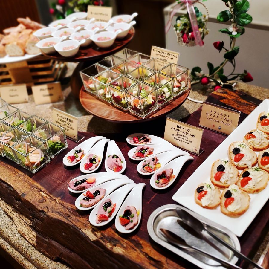 種類が多く素敵なブッフェは、いろいろ迷うので、最初は少しずつ多くの種類を食べて、気に入ったのをお代わりするのが鉄則です。