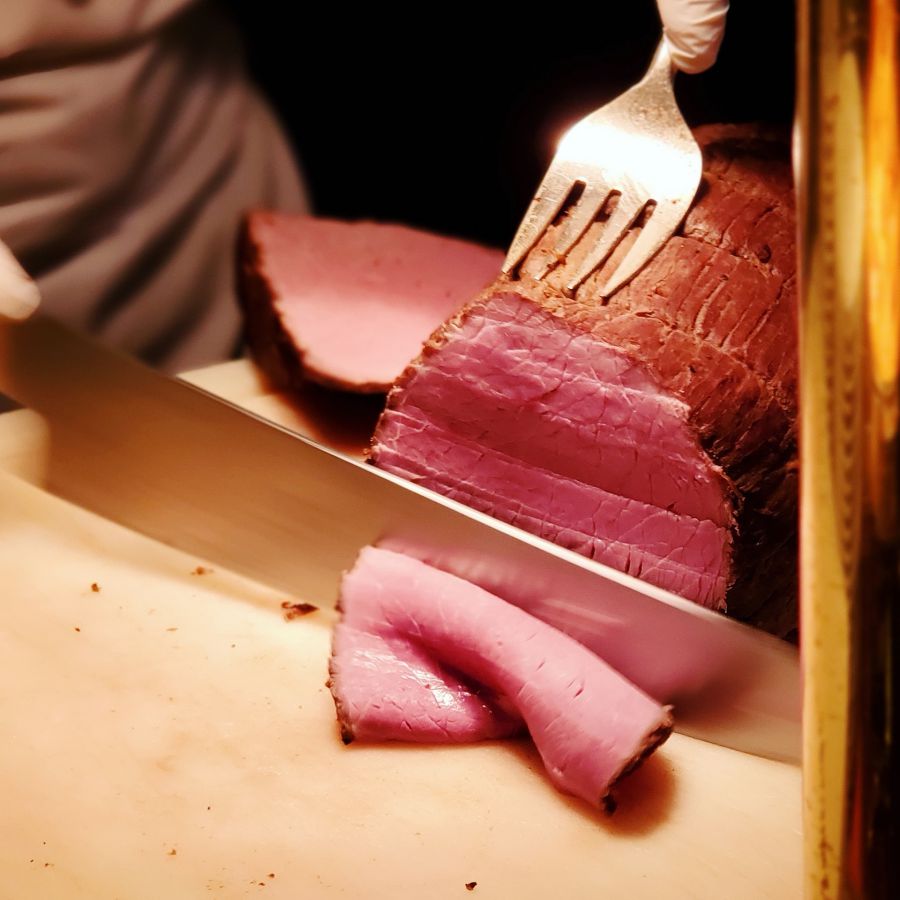 ホテルブッフェの醍醐味「ローストビーフ」も、もちろん目の前でシェフが仕上げてくれます。