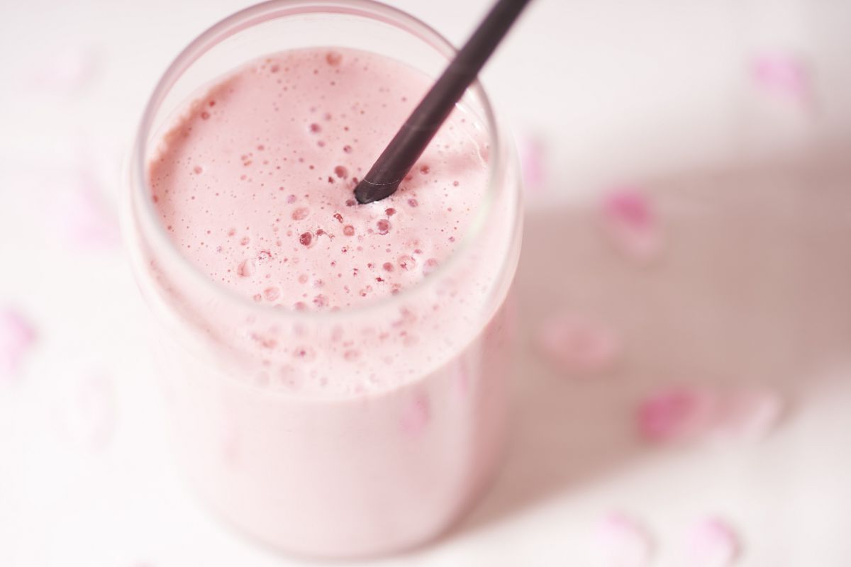 いちごとフランボワーズの甘酸っぱさと、てんさい糖、豆乳の優しい甘みが春にぴったりな「スプリングスムージー いちご&フランボワーズ」720円。