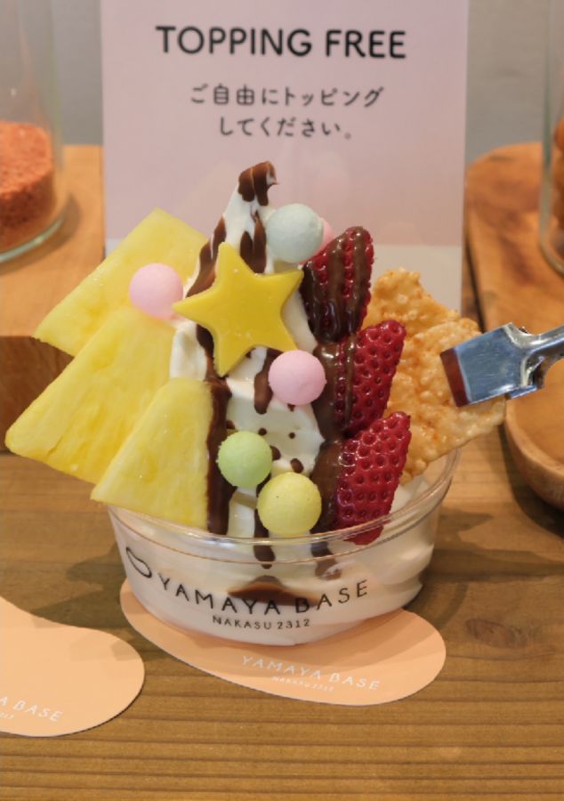 トッピングを終えたら、オリジナルソフトクリームの完成です。