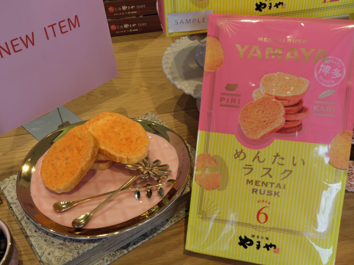 NEW ITEMとして、めんたいラスク(540円)も登場しています。目を引く鮮やかなピンクのパッケージで、女子へのお土産に喜ばれそう。