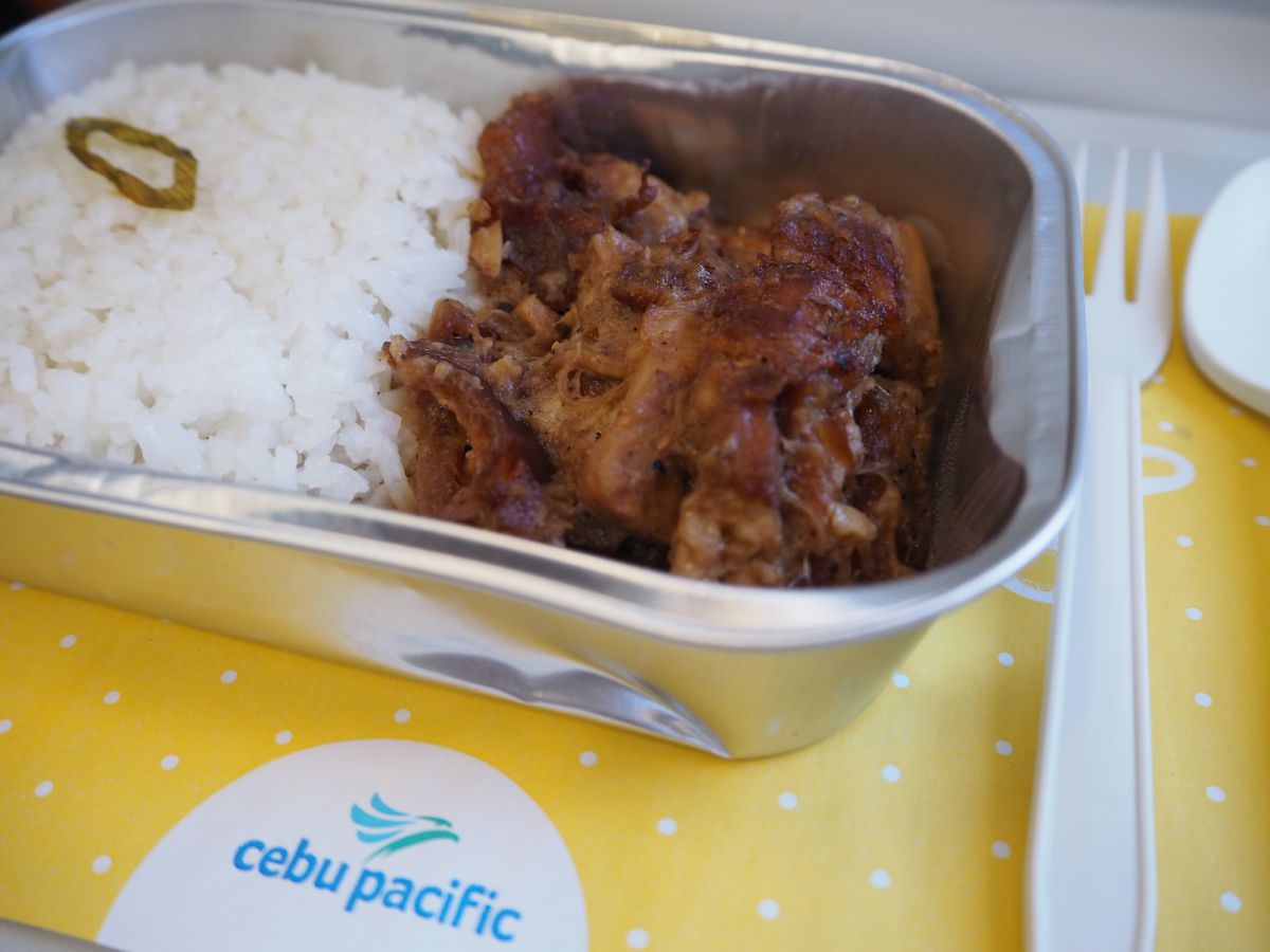 そして復路のお食事には「レチョン・パクシウ」を。レチョン=豚、パクシウ=煮る、の意味でこちらもフィリピンではとっても一般的な家庭料理です。ビネガー、砂糖、スパイスをブレンドしたソースで煮込んだ仔豚のローストに添えられたライスにベストマッチ。ごはんが進みます…。