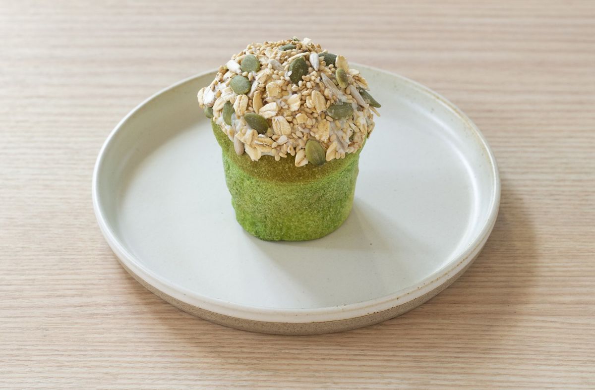 「プレーン」300円は、100%国産小麦に北海道産発酵バターと牛乳を合わせ低温長時間発酵。仕上げに静岡産抹茶を加えてふんわりマフィンに焼き上げています。