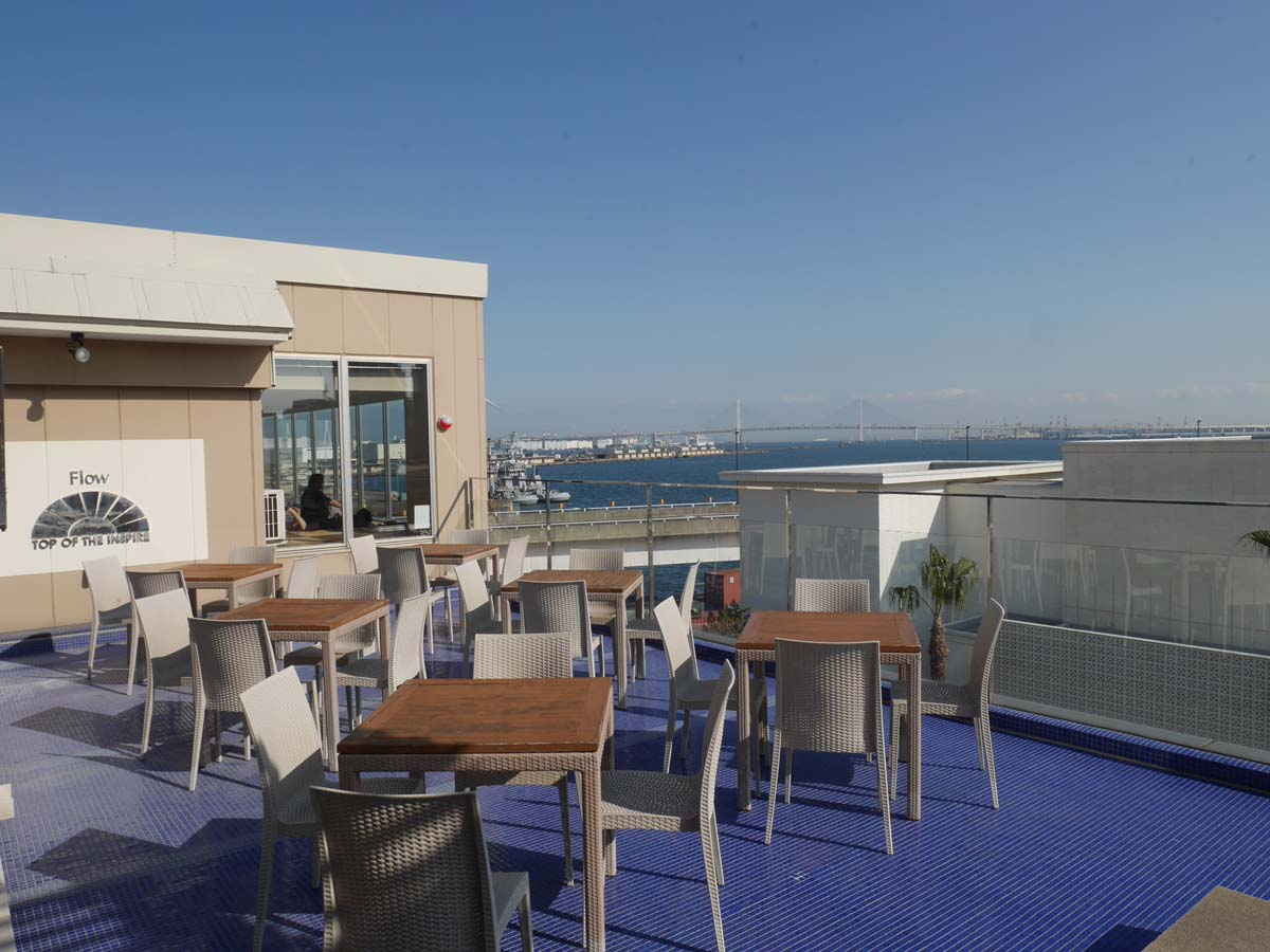 また、「遠赤ドーム」と「岩盤浴」の間にはみなとみらいからベイブリッジ、瑞穂ふ頭、工場地帯まで一望できる展望テラスがあります。