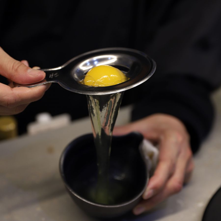 今回いただいたのは、「神果卵」のたまごかけごはん。このたまご、たまごにしてたまごにあらず……。伝わりますか、このトロ〜っとした質感と、金色とも表現できる黄身の生彩。通常は、あらかじめ調理をした上で提供されることが多いそうですが、ここでは何にも染まることなく、最も純粋な“たまご”な状態での味わいに触れられるのです。