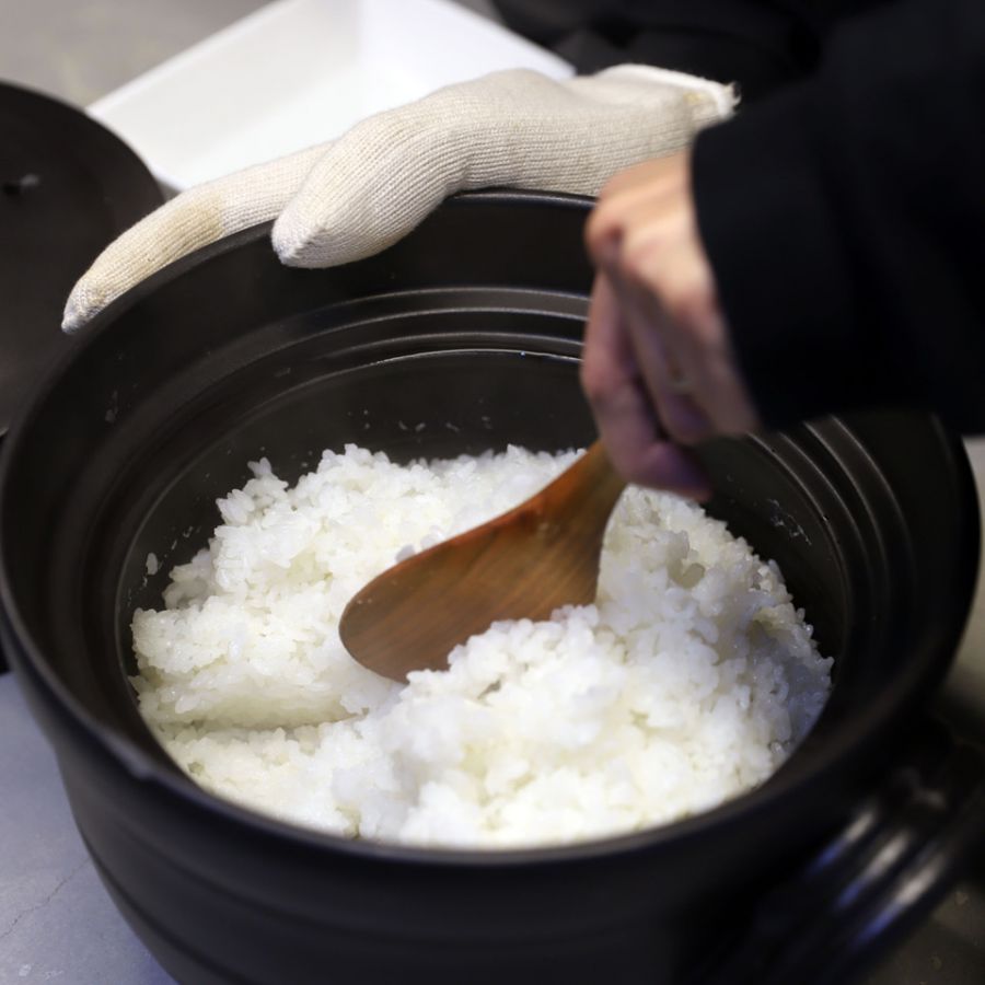 土釜で炊いた香り豊かなごはんと合わさることで、そこに内在する旨味をさらに引き出すたまごかけごはんが完成。写真のように鰹節(+100円)を添えて、ねこまんまとしていただくことも。ちなみに、土釜で炊くため数に限りがあります。