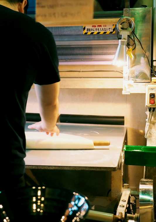 注文すると、なんと生地を延ばし始めるところから調理がスタート!これによって、想像を越えるツルツル、モチモチ食感が実現するのです。
